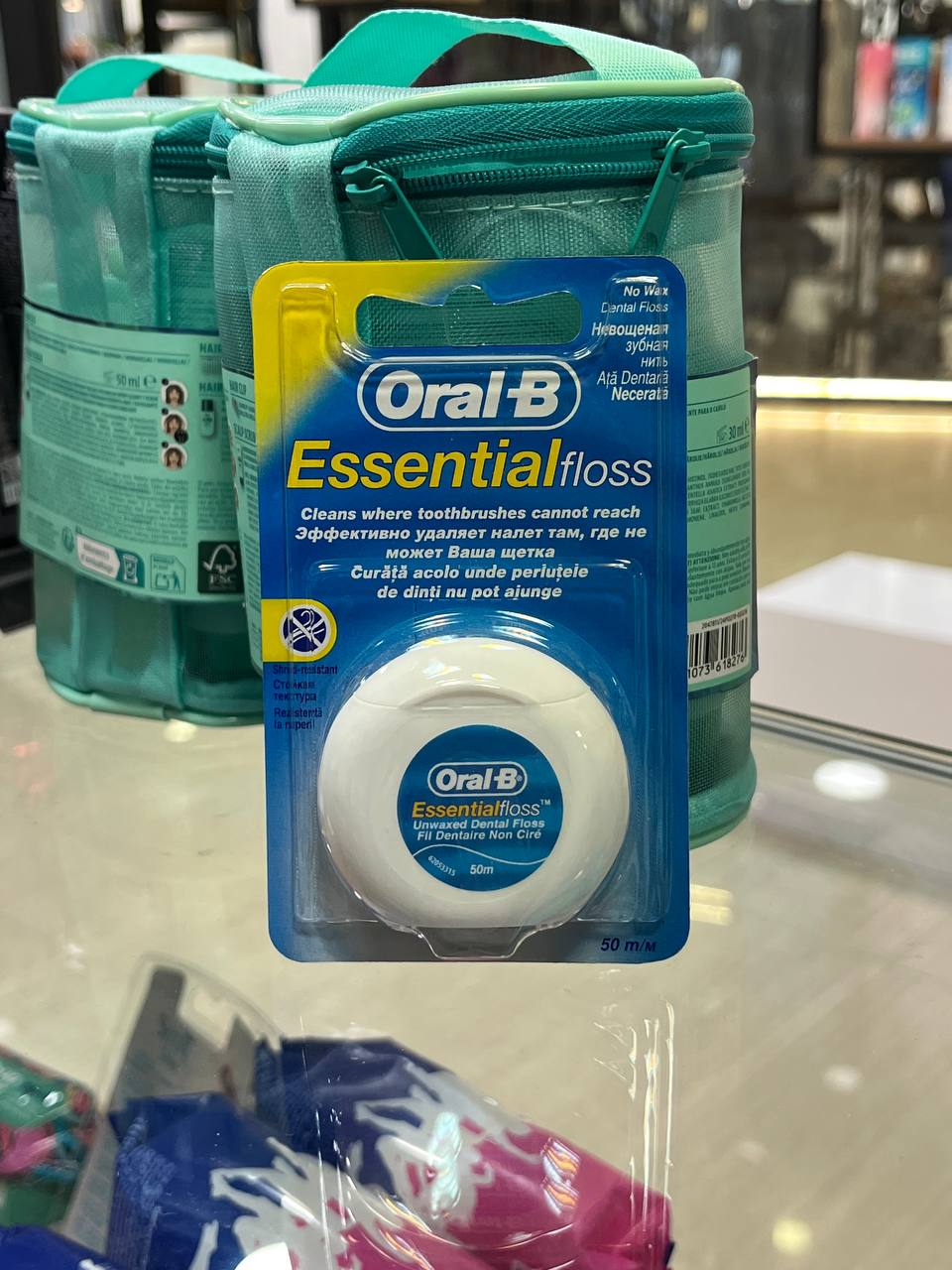 🦷 نخ دندان Oral-B Essential Floss ۵۰m – تمیزکنندگی عمقی، بدون موم و طعم، ساخت آلمان!